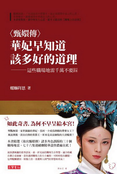 《甄嬛傳》華妃早知道該多好的道理:這些職場地雷千萬不要踩 職場生存寶典《甄嬛傳》的全新詮釋方式。最風趣的敘事語氣、刀刀見骨的銳利觀點、最中肯的建議,趣味度破表,實用度滿分,堪稱辦公室常備百憂解。 分析《甄嬛傳》各個腳色誤觸的地雷,教你猜中所有人心思,能升又能活的【職場上位法則】 作者:知名部落客螺螄拜恩 網路新銳作家,素以詼諧中一針見血的評論見長,以一篇「《後宮甄嬛傳》角色不正經短評」驚艷網友,短短數日即獲得120000人瘋狂轉載&25000人齊聲按讚! 內容簡介 甄嬛說過:「在這後宮中想要升,就必須猜得中皇上的心思; 若想要活,就要猜得中其他女人的心思」 本書要教你的是: 猜中所有人心思,能升又能活的【職場上位法則】 明豔無懤、家世顯赫的華妃,為何一夕成為倒楣的帶賽女王? 風流倜儻、淡泊自抑的果郡王,原來是是高富帥版的大清癡漢? 本書精選《後宮甄嬛傳》諸多角色無意中誤踩的33個職場地雷, 76集連續劇的精華盡皆濃縮在本書! 最詼諧風趣的敘事語氣、最一針見血的職場生存智慧, 適合收藏在辦公桌抽屜,當你遇到職場上的大小麻煩,可時時取出翻閱, 包你醍醐灌頂、煩惱立消,重獲與人拚鬥的智慧和勇氣! 看這本書有什麼好處? 職場中充滿了未知的不定因子,每個人多少都有過無意間得罪他人(老闆、上司或同事),因而吃虧的經驗,電視劇《後宮甄嬛傳》堪稱最經典的「職場生存指南」,本書教你洞悉職場上的大小心機與生存智慧,讓你趨吉避凶,得以保命安身、步步高升。 本書與其他甄嬛職場書有何不同? 作者螺螄拜恩詼諧風趣的語氣,讀來五內暢快輕鬆無負擔,一針見血的獨到論點、援引古今事例的深度職場智慧,為你解決職場上遭遇的大小煩惱。 如何使用本書 本書將職場上會發生的各種問題,分成初級、中級、高級、應用四大篇章,讀者可依據自身狀況選擇想閱讀的章節,也可一次瀏覽書中各角色所犯的錯誤,以此作為借鏡,讓你的職場發展無往不利。 《甄嬛傳》是一本最經典的職場教科書 本書教你從〈甄嬛傳〉諸多角色的失敗,看透人心的機微, 學習「別人不會主動告訴你、但你一定要了解的職場潛規則」。 ▲職場戀情 好吃不過餃子,好玩不過嫂子,職場戀情四大忌,切勿以身試法——大清第一癡漢 果郡王 ▲同事相處 這宮裡,不是妳對她好,她就一定得對妳好——禮多人會怪 甄嬛 ▲立場原則 做人有原則是好事,但原則不值得你捨棄一切去換——寧古塔背包客 甄遠道 ▲說話藝術 若不懂得將心比心,直爽與白目只在一線之間——只長個子不長腦子的吃貨 淳常在 這些人早知道該多好的道理 夏冬春:初到新環境,務必收斂鋒芒,棒子打的永遠是出頭鳥。 沈眉莊:在是非不斷的職場裡,內斂守愚方是長久生存之道。 曹貴人:處事方圓並濟,做人做事留三分餘地,才是有福之人。 瑛貴人:遇到職場性騷擾,被動隱忍絕非解決事情的方法,進退有度,懂得聰明保護自己才是王道。 年羹堯:不要從一個人的職位來評斷他的影響力,小螺絲有時正是影響成敗的關鍵人物。