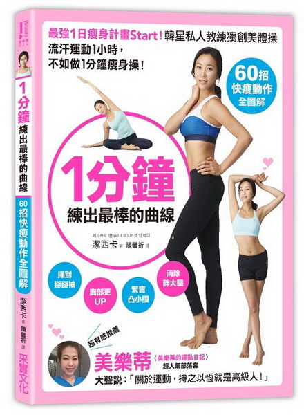 1分鐘,練出最棒的曲線:流汗運動1小時,不如做1分鐘瘦身操! 流汗運動1小時,不如做1分鐘瘦身操! ★韓國演藝圈最受歡迎的「潔西卡1分鐘美體操」強勢登台★ 韓星韓佳人、李?廷、李美妍、李美淑……,都在偷練的瘦身操。 ★〈美樂蒂的運動日記〉超人氣部落客──美樂蒂 親身體驗,超有感推薦! 【潔西卡1分鐘美體操★火紅原因】 ●流汗運動1小時,不如做1分鐘瘦身操!─再忙都要抽出1分鐘練習,想瘦不再找藉口。 ●瘦1公斤如同瘦5公斤─體重機的數字不重要,看起來「瘦更多」才是我們的目標。 ●最強1日瘦身計畫─美胸•平腹•提臀•瘦腿……,想瘦那裡就瘦那裡,體型對,穿衣更漂亮。 ●不用汗流浹背,要優雅變美─潔西卡老師的美體操,就是這麼簡單的就能輕鬆練習。 ◆到底是什麼運動,竟然只需1分鐘,就能有效瘦身? 有些人雖然體重輕,看起來卻很胖,或努力減肥,卻總是瘦錯部位或根本沒瘦,到底為什麼呢?那是因為「身體歪斜」,肌肉缺乏訓練,導致體態不正,當然瘦不了!這套「1分鐘完美曲線操」是透過調整姿勢,有效刺激肌肉,集而幫助身體改變「尺吋」,增加燃脂肌力,找回纖瘦曲線,變成「易瘦體質」。 ◆隨便運動1小時,不如集中鍛鍊1分鐘! 再有效的運動只要動作複雜、時間太長,就容易讓人卻步。針對時間有限的現代人,潔西卡老師整理自己多年來的教學經驗,獨家研發「1分鐘完美曲線操」,共有60招快瘦動作。不需器材、不限場地、不限時間,每個動作都只需要「1分鐘」。你可能會懷疑,真的有效嗎?人氣韓星李?廷要告訴你:「只需做操1分鐘,卻讓我不停冒汗,更治癒了我的骨盆歪斜及高低肩,重新塑造完美曲線!」 ◆ 瘦臂、平腹、美臀、纖腿,就靠「1分鐘完美曲線操」! 不論你是想減重或雕塑身體,都可以透過這套美體操來完成。手臂、肚子、大腿……,每個部位都有適合的雕塑動作,你可以根據需求,任意挑選數個動作,每天花費5∼10分鐘做操,便能排出體內廢物,掰掰袖、凸小腹、河馬臀等,專攻最難瘦的部位。這些快瘦動作包括: ★ 13招美背伸展操──消除虎背熊腰,打造緊實上半身 ★ 13招美臂緊實操──消除副乳、掰掰肉,找回迷人的纖長手臂 ★ 5招渾圓美胸操──快速改善下垂, 打造堅挺胸部 ★ 8招美腰瘦肚操──增加燃脂肌力,練出迷人馬甲線 ★ 12招緊實俏臀操──消除鬆垮軟肉,打造迷人蜜桃臀 ★ 9招拉筋瘦腿操──改善腿部浮腫,養成性感美腿 只要每天做操,即使體重沒有下降,也會因為肌肉已恢復彈性,使體態均勻,瘦1公斤像是瘦5公斤。今天夏天,就用「1分鐘完美曲線操」鍛鍊曲線,變身衣架子,穿上最喜歡的衣服吧!