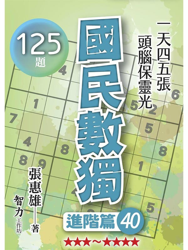 激辣數獨133選9   數獨是智力遊戲的一種,英文稱為「Number Place」,在日本則寫作「(Sudoku)」。規則就是在9×9的方格裡,用1∼