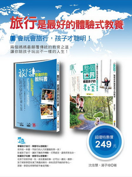 | |  | | .gif) | | 作者:沈佳慧、湯子瑢 | | 出版社:凱信企管,出版日期:2013/10/2 | | 分類:套書 / 教育•心理•勵志 | | 定價:249 元,優惠價:77 折 192 元 | | 旅行是最好的體驗式教養(套書)
