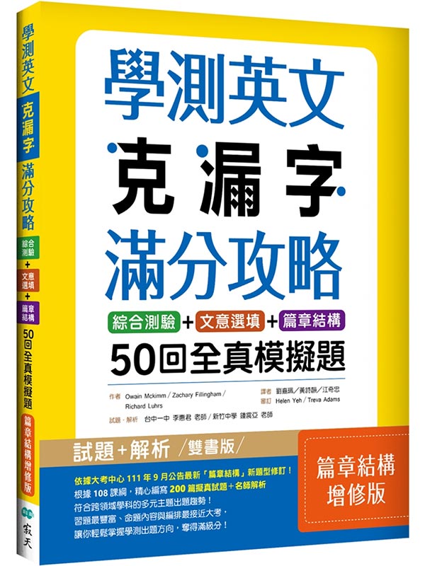 學測英文克漏字滿分攻略:綜合測驗+文意選填+篇章結構50回全真模擬題【篇章結構增修版】(菊8K)